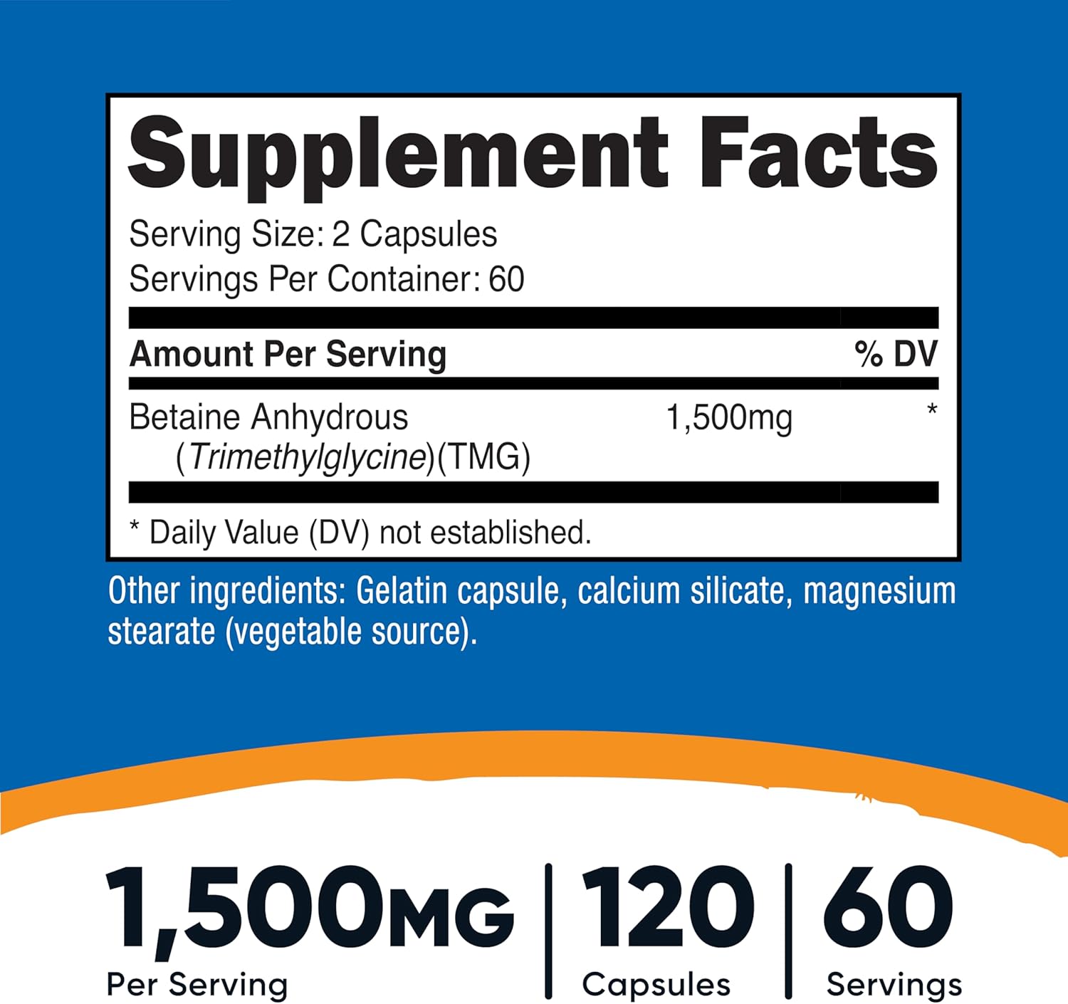 Nutricost Betaine Anhydrous Capsules 1500mg 120 Caps 60 Serv