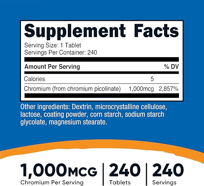 Nutricost Chromium Picolinate 1000 MCG 240 Count 240 Ser cantidad
